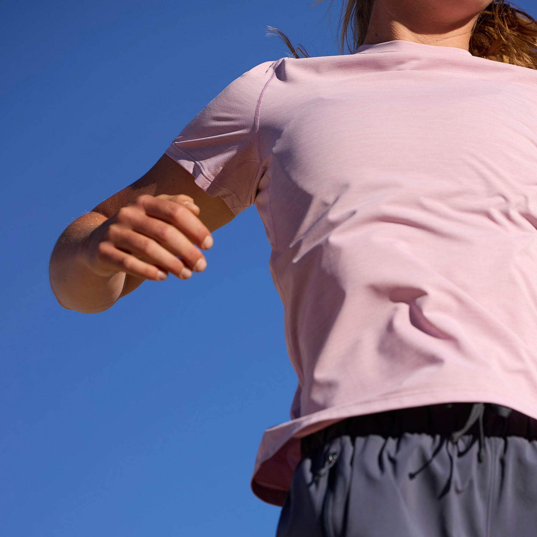 Ултралека материя от 100% рециклиран текстуриран трикотаж, която съхне бързо и осигурява комфорт при интензивни дейности